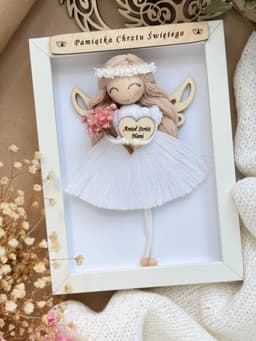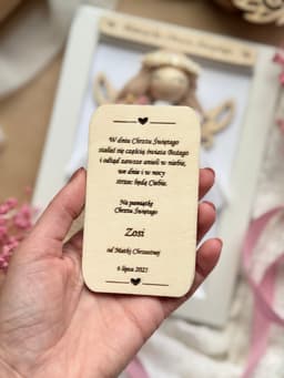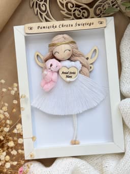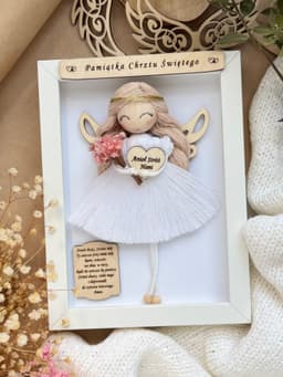 - napisu nad ramką, np. Pamiątka Chrztu Świętego Zosi, Anioł Stróż Julki itp.