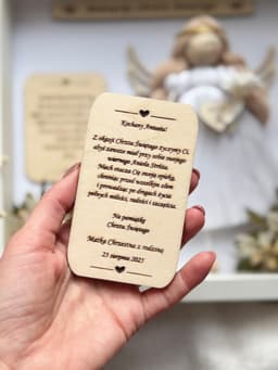 - dodatkową tabliczkę z dowolnym tekstem na tył ramki (np. z dedykacją, jeżeli z przodu zdecydujesz się na tabliczkę tylko na treścią modlitwy lub inspirującym cytatem).