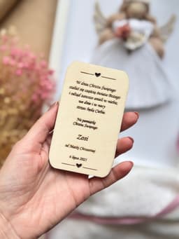 - dodatkową tabliczkę z dowolnym tekstem na tył ramki (np. z dedykacją, jeżeli z przodu zdecydujesz się na tabliczkę tylko na treścią modlitwy lub inspirującym cytatem).