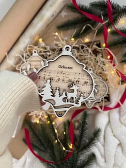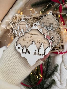 Piękna zawieszka na choinkę z motywem kolędy. Na każdej zawieszce wygrawerowany jest motyw z jednej polskiej kolędy, a na tyle ramki Twój tekst. Taki mała personalizowana zawieszka to doskonały pomysł na drobny upominek.